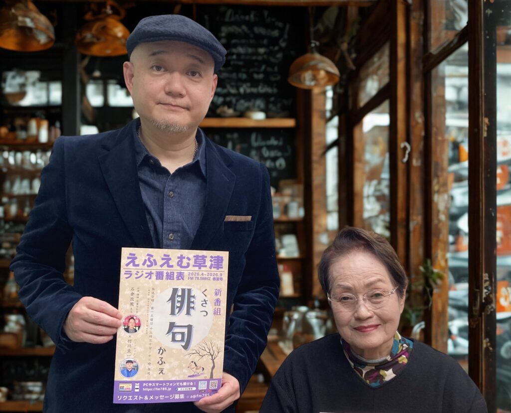 草津俳句連盟会長で俳句結社「花藻社」主宰の石倉政苑先生と、ムッシュこと村川圭一パーソナリティが皆さんを俳句かふぇへご案内。俳句のまち草津ならではのお話も交えながら、言葉あそびとしての俳句の世界へ誘います。第1土曜日12時30分より放送(再放... NEWS