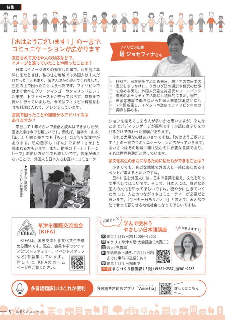 声の広報は、 「広報くさつ」の内容を楽しく、そして分かりやすくラジオを通して皆様にお届けしています。
