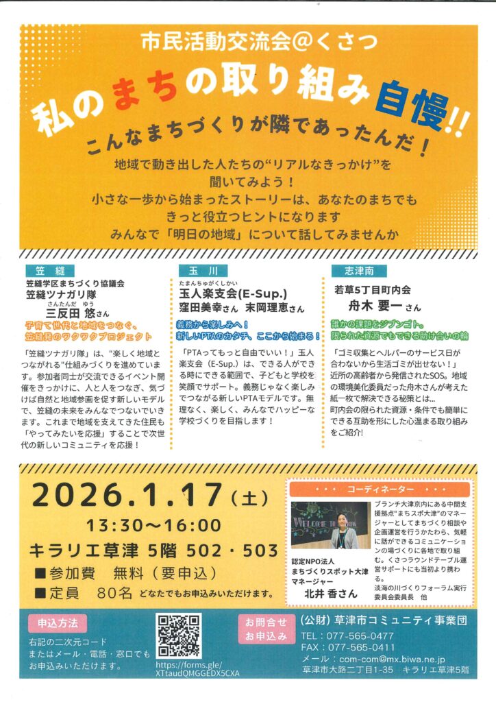お申込み先:コミニュティ事業団(キラリエ草津5F)