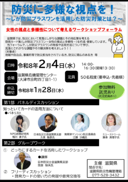 1月24日、草津市さわやか保健センターで草津市社会福祉協議会、草津市、各学区防災担当者、民生委員児童委員、まちづくりセンターの方、ボランティア連絡協議会他80名を超える方が参加しました。