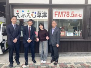 草津市スポーツ協会の田中義一さんとシンコースポーツ株式会社の三嶋虎太朗さんをお迎えし、4月から草津市内の体育館などの社会体育施設の指定管理を行う「くさつスポーツアクティブ事業体」の紹介をお届けします。